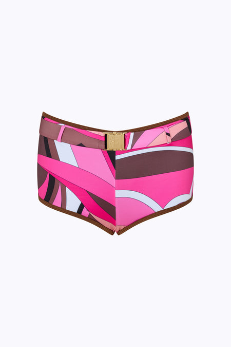 Dolce Pink features cool berry hues and rich browns in fluid, swirling patterns, evoking a vibrant seventies jet set vibe.