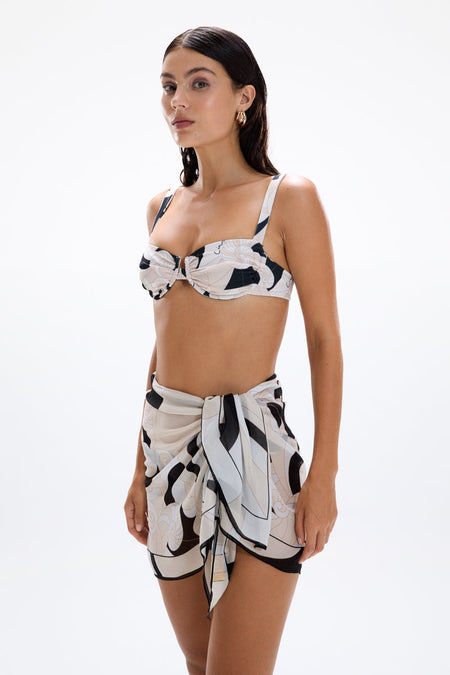The spiral chambers of the Nautilus sea shell were the inspiration behind our signature retro-graphic print of 'Pacifica' High Summer '24.