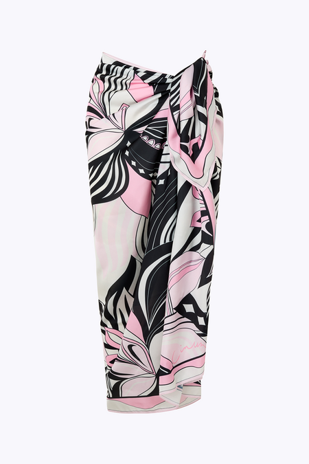 Our abstract retro-graphic print of the collection delivers elevated elegance in a muted color palette but with exaggeration of shapes.